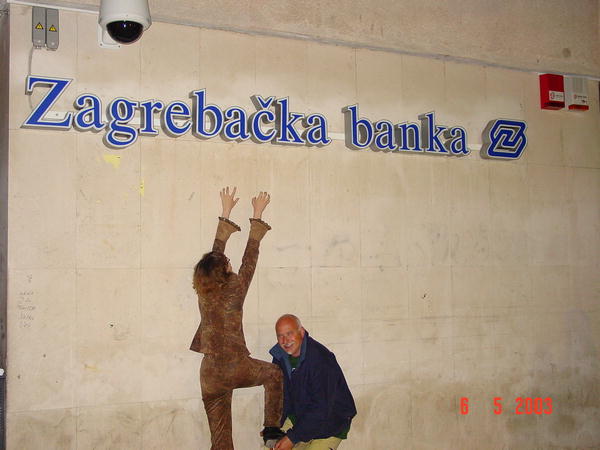 Вот ещё встретился местная Загребачка банка и плакат с видом на ту же площадь с