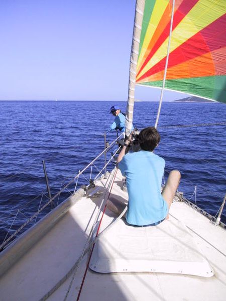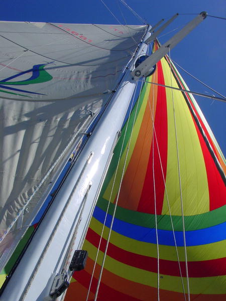 поставили паруса, а чуть позже — ещё и спинакер.