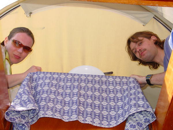 Обед был устроен на верхней палубе под тентом. Вот так выглядел стол сверху