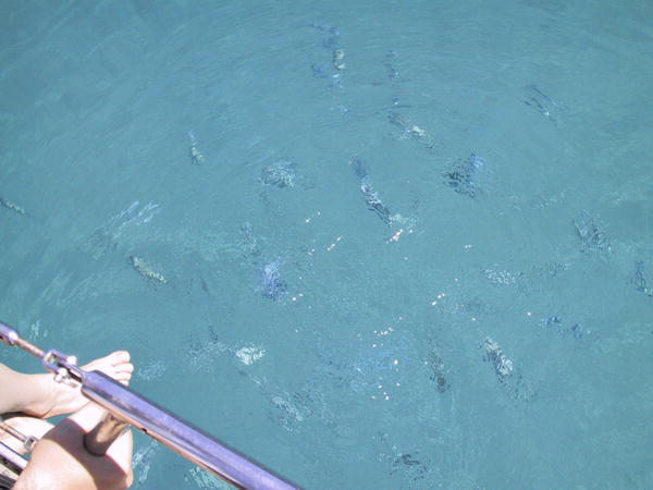 А утром мы кормили в этой бухте рыбок. Яблоки почему-то рыбы жрать не стали,