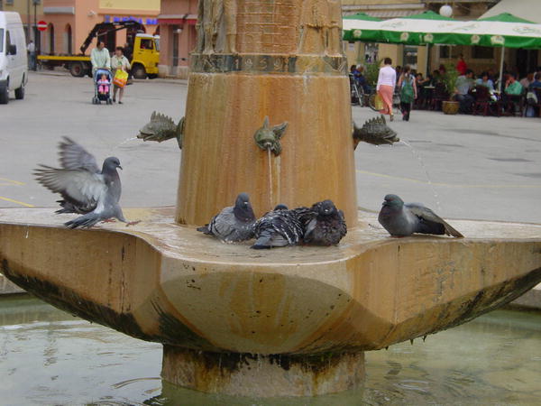 фонтанчиком, где купаются голуби. С обоих сторон этого полуострова разместились