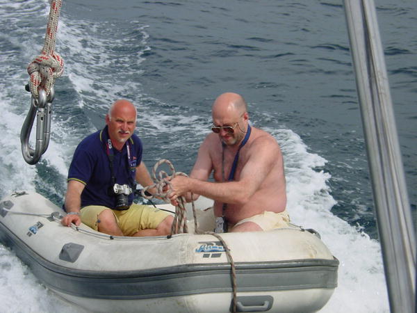 Маурицио с Лепшоковым отвязали штатное плавсредство от кормы и сделали вокруг яхты
