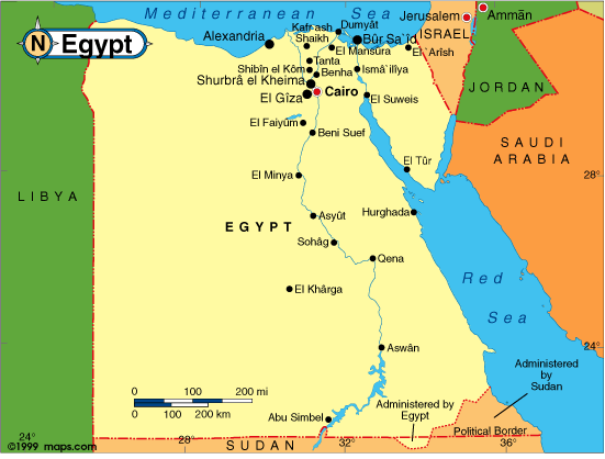 В Египет можно ездить преследуя две цели -- пляжный морской отдых и приобщение к истории. Пляжный отдых -- это понятно, всё же почти что экватор, купаться можно почти круглый год, а аквариум планетарного масштаба -- Красное море -- оставляет странное смешанное чувство жалости при виде других аквариумов: это жалкая подделка под то, как оно бывает на самом деле. Мы выбрали весьма удачное время -- солнце уже не слишком агрессивное, а море ещё очень тёплое. Хотелось бы ещё позаниматься фотоохотой на рыбок... Ну и история. Люди в этих краях жили издревле, я не буду уподобляться египтологам, люди они странные и по большей части слегка с приветом, но то, что Египетская цивилизация является одной из древнейших на нашей планете, не вызывает сомнений. На фоне семи тысяч лет истории Египта празднование 850-летия Москвы как-то, м-ммм-м-м, не внушает должного трепета. Останавливаться на истории Египта я не буду, за исключением совершенно необходимых моментов, связанных с посещением мной исторических мест. Эту самую историю вы можете изучить самостоятельно и на том уровне подробностей, который необходим. Для примера могу выдать ссылку на http://www.egyptclub.ru/. Страна довольно большая, хоть и не чета нашей одной восьмой суши. Большая часть занята пустынями и горной грядой (без названия), река одна, но большая -- Нил. Народу около 50 миллионов, живут вдоль Нила и в оазисах. Раньше Нил разливался и топил всё вокруг себя, потом построили Асуанскую плотину (большая такая, не без участия наших инженеров построена, а точнее говоря -- под их бдительным руководством). Теперь собирают по три урожая в год. Основные города: Каир (столица, около 20 млн. жителей), Александрия и остальные уже мельче. Основной доход государства -- сборы в Суэцком канале. Основное население -- этнические арабы. Потомков древних египтян -- тех, что строили пирамиды и всё остальное -- в природе не сохранилось, они были почти целиком уничтожены во время очередного завоевания Египта. Попадаются также и другие нации. Основное вероисповедание, соответственно, -- ислам шиитского (неагрессивного) толка. Египет занимает лидирующее положение среди стран арабского мира, имеет сильное представительство в ООН. Обе киностудии, снимающие фильмы на арабском находятся на территории Египта, так что египетскую разновидность арабского языка понимают во всём арабском мире. Сами египтяне называют свой арабский самым правильным среди остальных арабских. О других нациях. Кроме эмигрантов можно упомянуть такую самобытную нацию, как нубийцы. Это самые что ни на есть негры, черного негритянского цвета с негроидными чертами лица и т.д. Они появились в Верхнем Египте в незапамятные времена ещё до расцвета египетской империи, когда сами египтяне представляли собой скопище весьма диких племён. Так как нубийцы по всей вероятности приплыли по Нилу и вели оседлый образ жизни, они уже знали мореходство и земледелие. Есть гипотеза, что именно они научили всему этому египтян и даже одарили их таким величайшим изобретением человечества, как колесо (хм, теперь египтяне могли строить чариоты -- шутка). Нубийский язык весьма сложен и не имеет письменности. Во время военных конфликтов с Израилем хитрые египтяне использовали нубийский язык как шифр (как и американцы использовали индейские языки во вторую мировую), израильтяне так и не научились