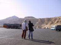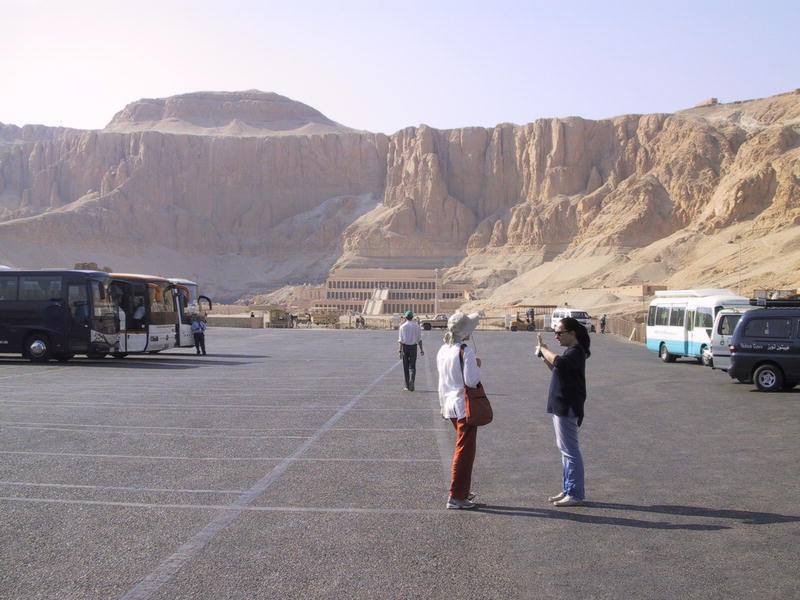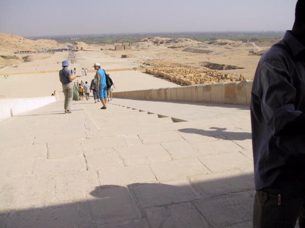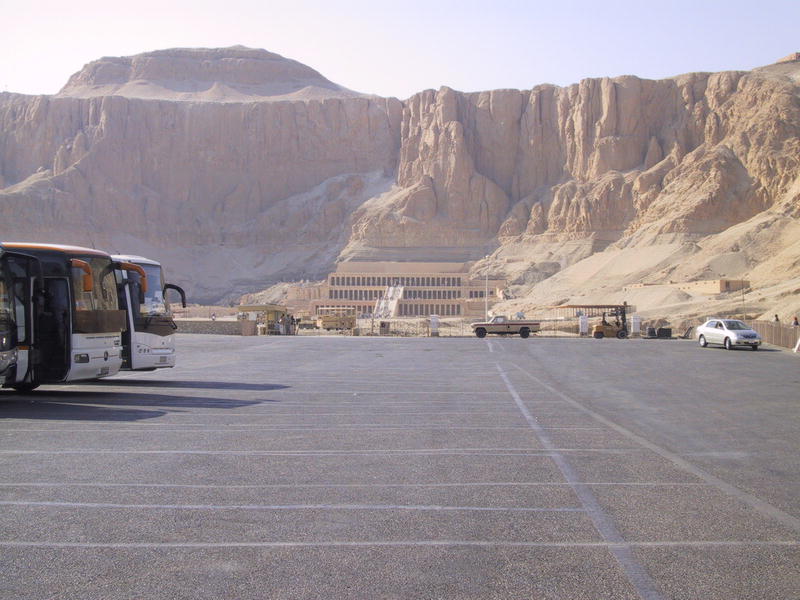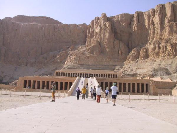 Обратите также внимание на гору пираминдального вида слева на второй фотографии. Именно благодаря её форме и внешнему виду было выбрано место для захоронения фараонов в долине царей. Индивидуальные пирамиды к этому времени строить уже перестали, но хоронили поблизости от пирамиды, так сказать, естественного происхождения. Вот эта "пирамида" и видна, а долина царей расположена в горах справа от храма Хатшепсут.
