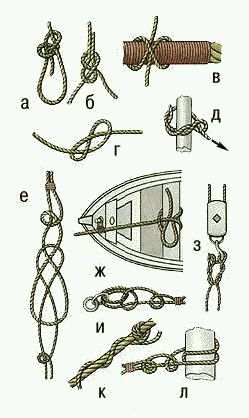 Узлы морские, врем. соединение двух гибких тросов или троса с к.-л.