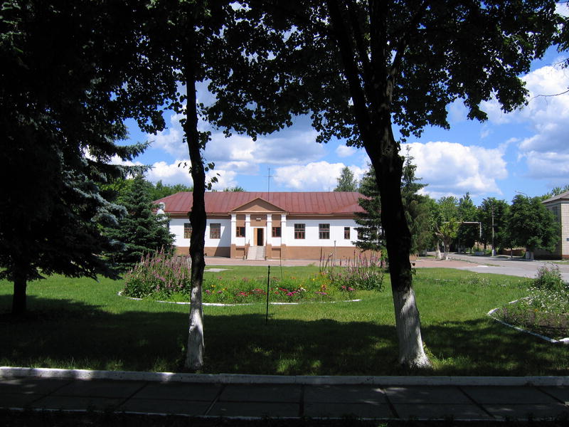 Ценральная полщадь: дом культуры, гостиница "Полесье", магазин "Радуга" напротив.