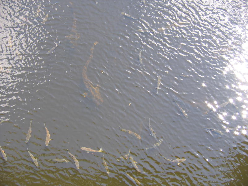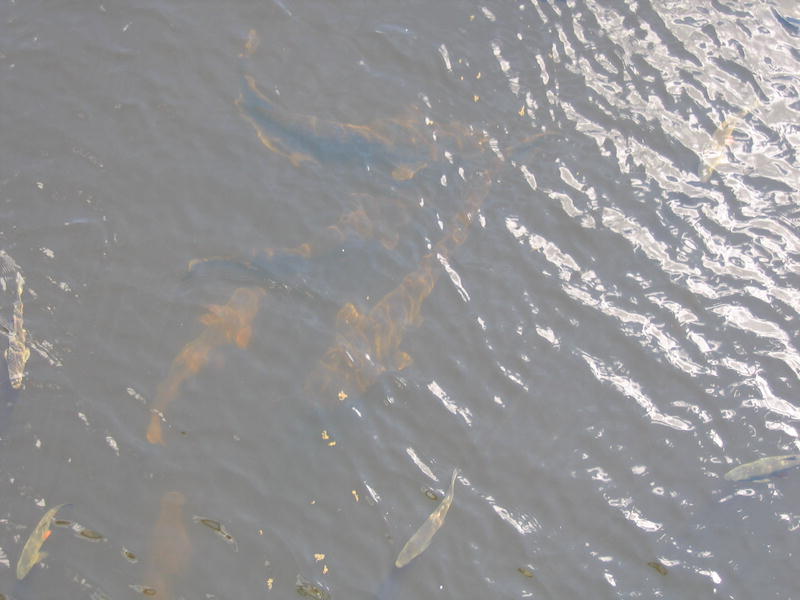 А вот собственно рыбки. Кроме как тварями и язык не поворачивается их назвать. Те, которые "маленькие", — это что-то типа сазанов почти в руку длиной, а сомы — так те за два метра с лишним будут. Добрых полчаса стоим и разглядываем.