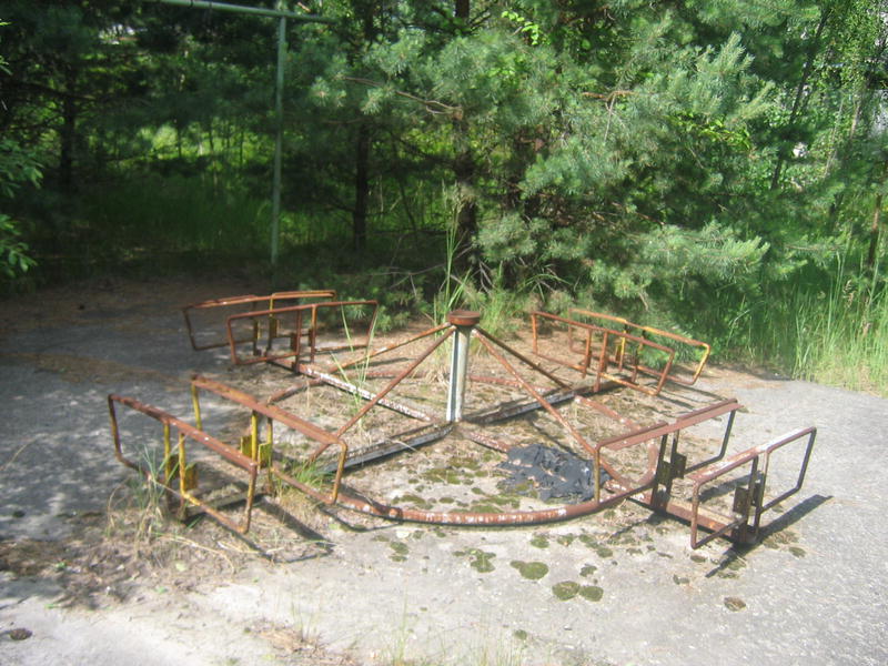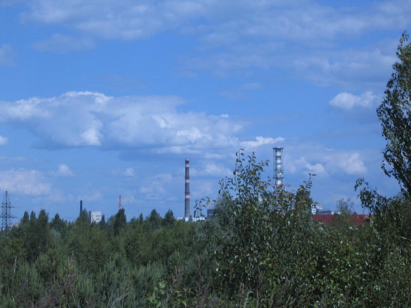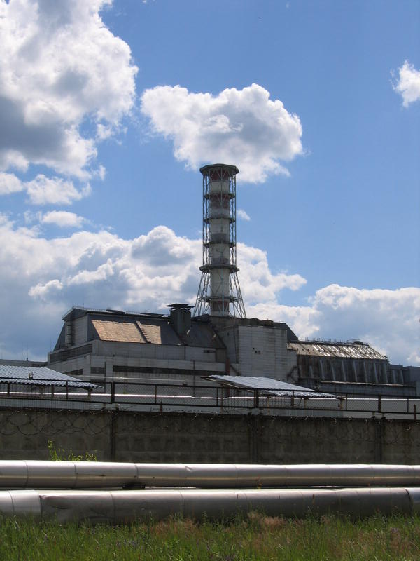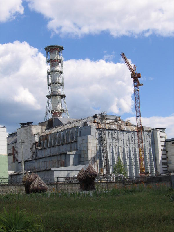 Подъехали поближе, посмотреть на саркофаг. Стоит. Ржавеет.