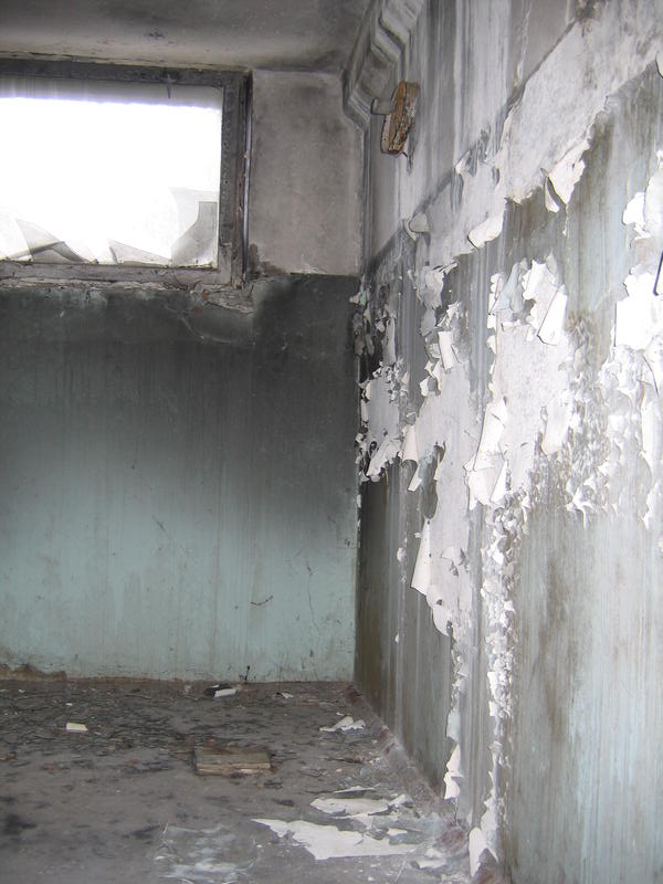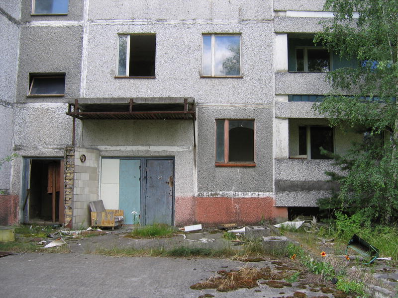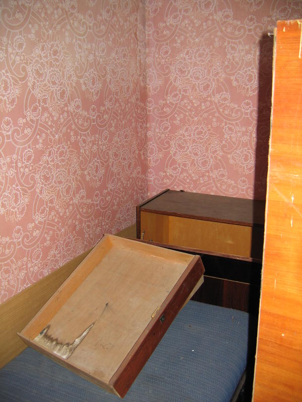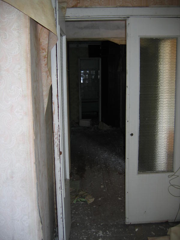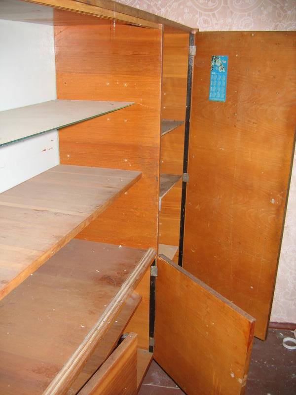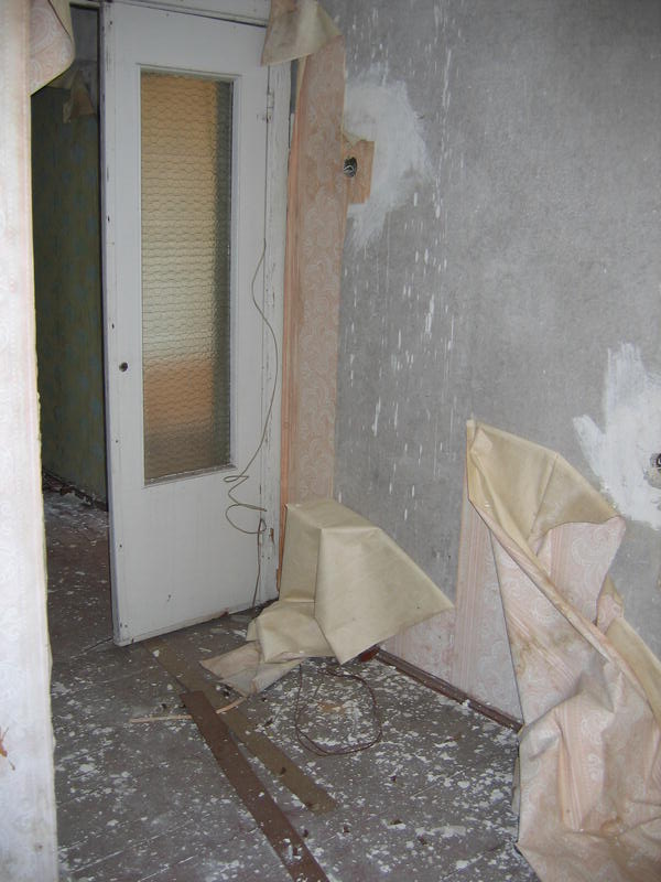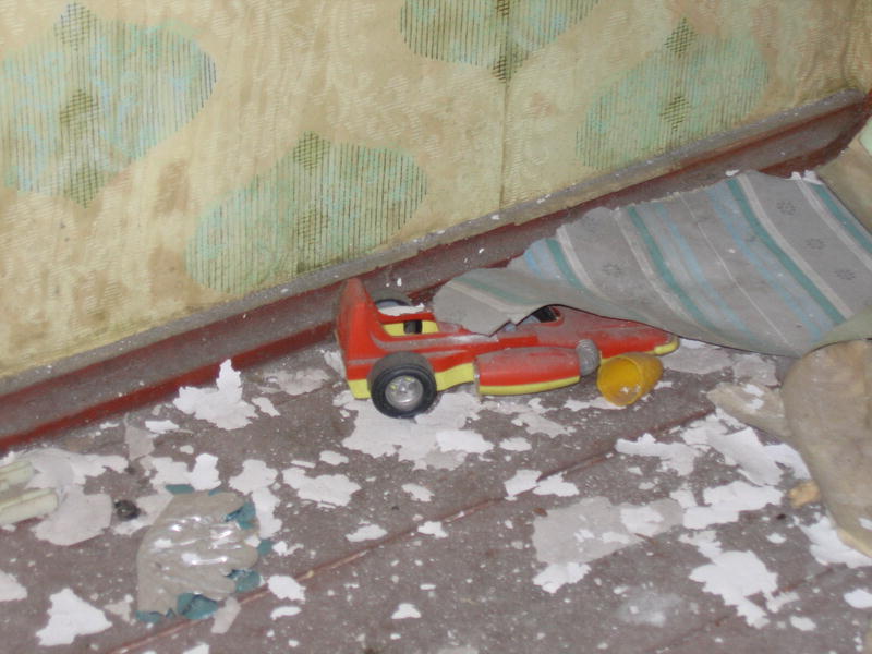 Мебели почти нет, её специально выкидывали или ломали до некондиционного вида, чтобы у мародёров не было соблазнов вывезти и перепродать. Сами небось бы не пользовались, потому что вывезти не запачкав — почти без шансов.