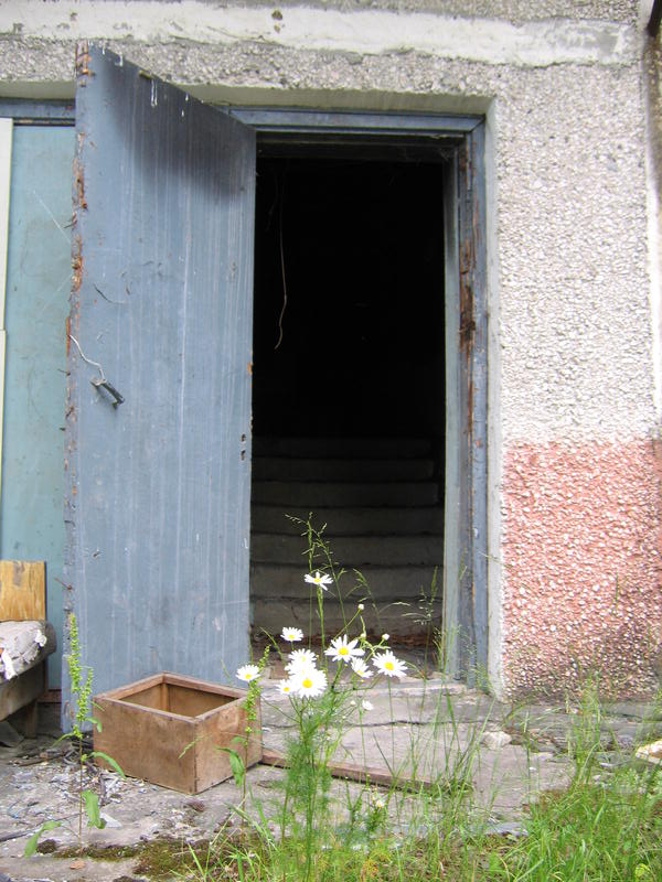 Стены, конечно, облупились, но для двух десятилетий непогоды — окна частично выбиты, ни отопления, ни ухода — дом выглядит отлично. Никаких трещин, дыр и развалин — умели же строить, когда хотели. Лестница, топ-топ-топ, шестой этаж.