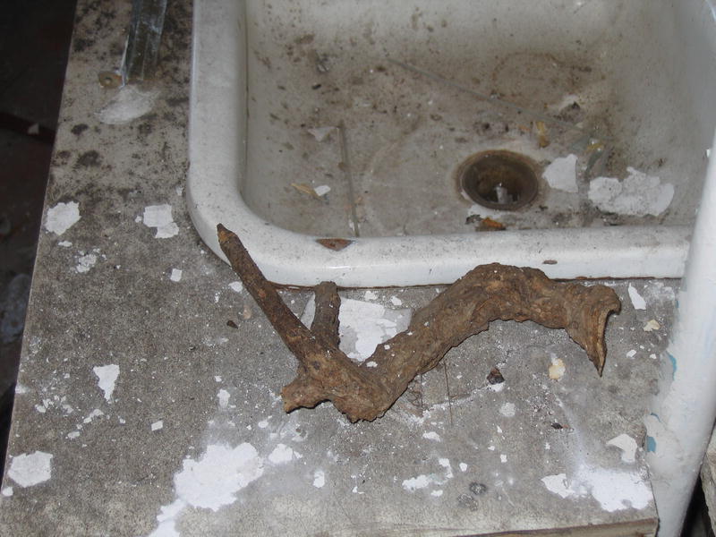 Налево кухня. Эта небольшая деревянная коряга висела когда-то на стене.