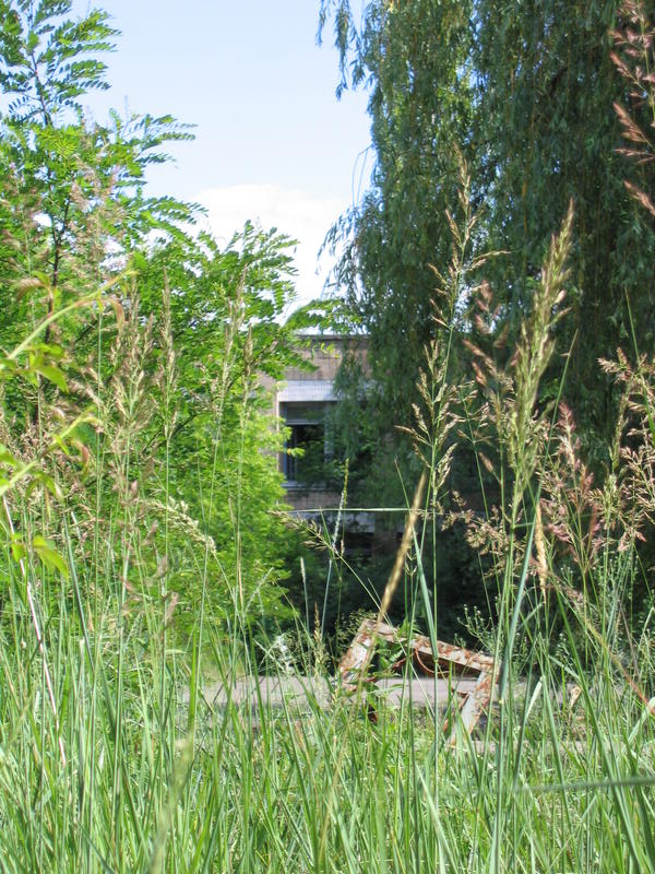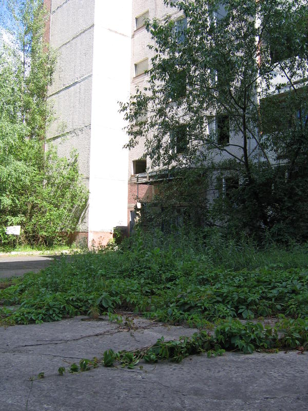 Двор зарос ужасно. Деревья вымахали, расползлись самосадом во все стороны, вьюны и трава вылезли на асфальт. Узкие дорожки почти сплошь заросли, широкие площади асфальта ещё держатся.