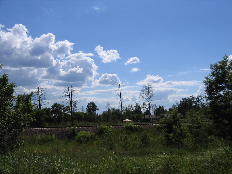 Недалеко от железнодорожной станции торчат в рядок скелеты мёртвых деревьев — засохли после аварии. Это ещё ничего. Вот Рыжий лес у станции тоже весь на корню высох от высокого уровня радиации, его захоронили. Оставили только дерево-крест, на котором во вторую мировую войну фашисты партизан вешали. Но сосна в гордом одиночестве простояла недолго, сгнила и развалилась.