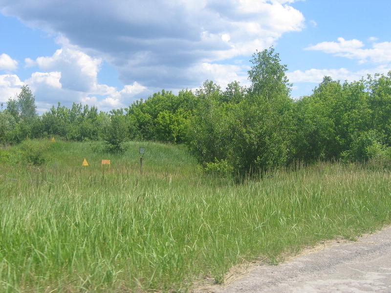 Едем в сторону Припяти. Это всё, что осталось от деревни Копачи. Дома разваливали по брёвнам и засыпали сверху землёй или песком. Чтобы не оставлять людям шансов остаться здесь. Жить всё равно было нельзя. Теперь тут чисто поле, на месте домов только кое-где холмики да выглядывают знаки радиационной опасности.