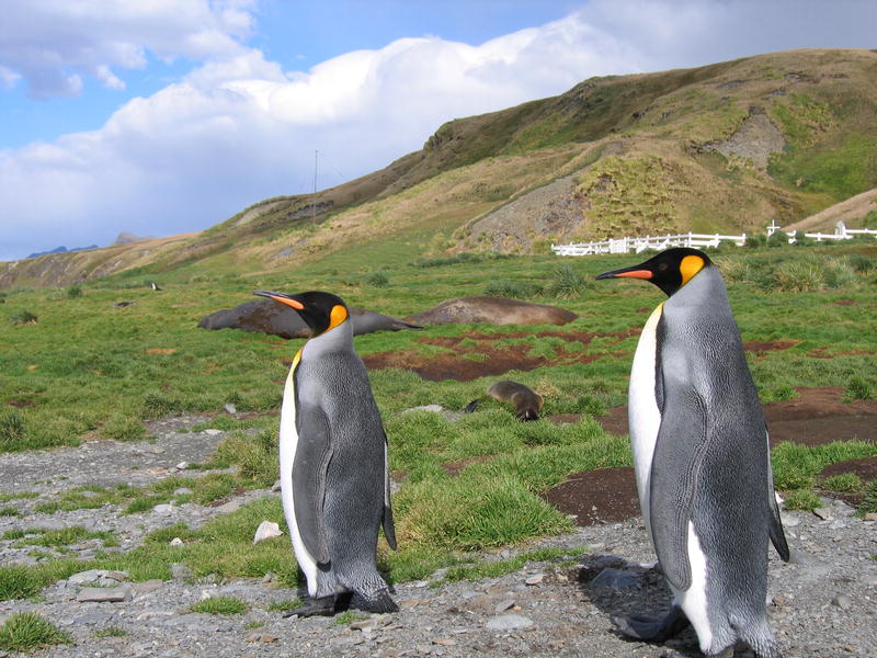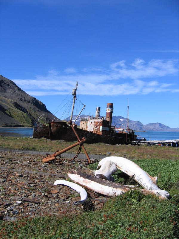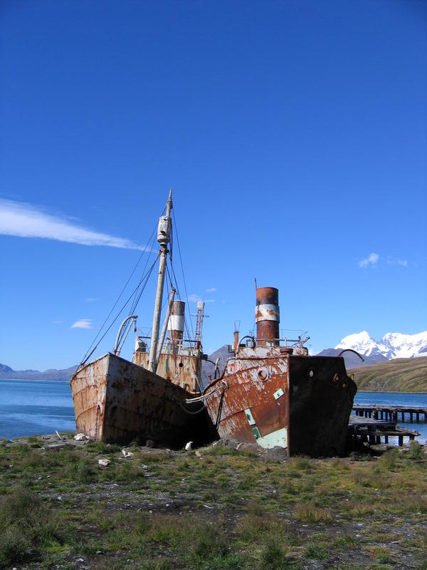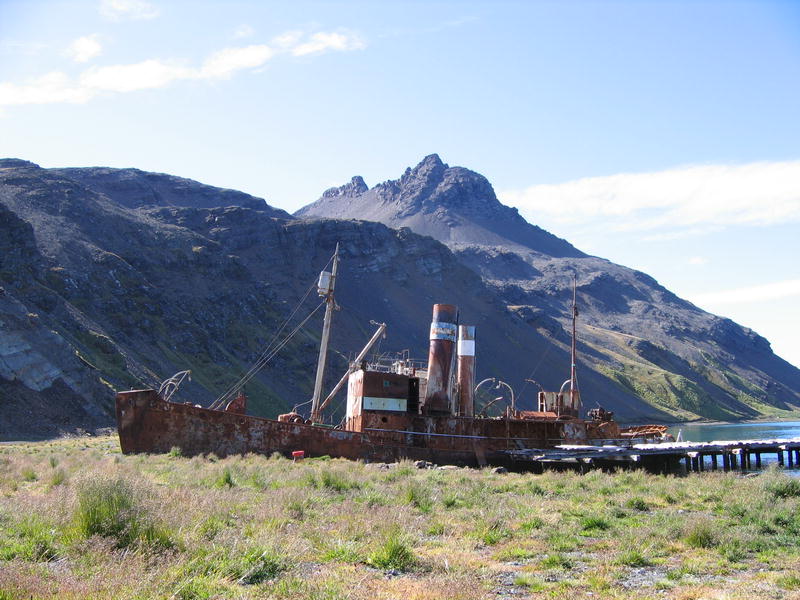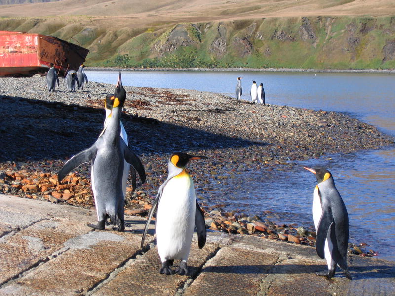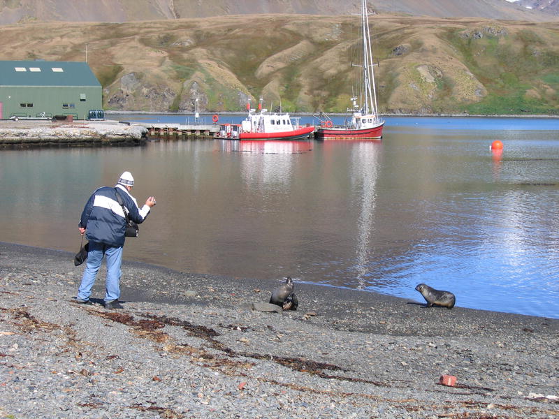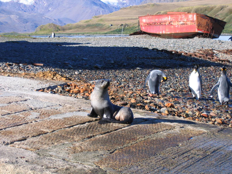 Путешествие на Южную Джорджию или в гости к пингвинам11.03 Гритвикен (Grytviken)Утро встретило нас следующими впечатлениями. Во-первых, спать без крена в три (а то и в четыре) раза лучше, чем с оным. Потому что левый бок за предыдущую неделю был отлёжан до полного не хочу. Во-вторых, снаружи — полный зоопарк! Причём клеток нету, и звери бродят без присмотра просто так сами по себе. Второе впечатление от этого зоопарка — это на самом деле не зоопарк, а таки немножко цирк. Уж больно эти пингвины потешные. Ходят переваливаясь с боку на бок туда-сюда, суют свои любопытные носы куда ни попадя. Пингвины ходят как у себя дома. Впрочем, они действительно дома. Живут они тут. И никто их тут не трогает. Пингвины галдят, лазят поплавать в воду. Тюлени забредают. И никто никого не ест! Такая модель пингвинов называется королевские пингвины. А вот местный патрульный катер, и на нём герб Южной Джорджии (немножко засиженный мухами). Рано утром пришла таможенная офицерша, наставила нам штампов в паспорта (ох и любят же они это дело), устроила инструктаж. Единственное животное, которое можно убивать — крысы. Остальных нужно беречь, и если зверь проявляет беспокойство — отойти от него подальше. Также она выдала нам по подарочному набору — карта, брошюрка и сертификат факта высадки на Южную Джорджию (я свой экземпляр подписал позже у капитана). Потом мы сходили на бывшую китобойную станцию — собственно Гритвикен. Потому что административно-научное поселение, где мы собственно высадились, находится в другом месте бухты и называется на самом деле King Edward Point. Ещё зашли в музейчик и погуляли по берегу туда-сюда. Но обо всём по-порядку. Твёрдая земля под ногами — это вообще здорово придумано. Кроме того за прошлую неделю глазу цепляться было почти не за что — одни волны да море, — так что нафотографировался всласть. Вид от K.E.P. к Grytviken и наоборот от Grytviken к K.E.P. Живность непуглива, не выделывается и позволяет себя фотографировать. Моё основное впечатление от китобойной станции — всё стоит на костях. По всему берегу разбросаны китовые кости. Причём не какие-то там мелкие косточки, а рёбра метра по два длиной, позвонки динозаврьего размера, и костей этих — тьма. Всё что белеет на берегу — всё кости. В лучшие времена на станциях перерабатывали до 8000 китов в год. Это был просто какой-то сумасшедший конвейер, сравнить можно разве что с лагерями смерти. Так что чего уж тут удивляться, что вокруг сплошные кости. Тихий ужас. Посудины стоят на своём последнем причале... Что ещё попадается вокруг. Больше всего попадается тюленей. Их в своё время тоже перебили почти поголовно (и даже два раза), но сейчас популяция восстановилась. Очень много речек и ручейков. Горы довольно высокие, много снега и ледников — всё это стекает ручьями. Речушки на каждом шагу. Растёт такая трава — tussac grass. Она растёт кочками-пучками, и сверху на кочках или под ними очень любят валяться тюлени (fur seal, они же котики). Лежит себе такая меховая тушка носом в куст, пока не наступишь — не заметишь. А у него не только ценный мех, но и полная пасть зубов. Хищник как-никак. Вспомнилось к месту, что таможня утром на брифинге рассказывала, что остров местами заминирован (ничего подозрительного руками не брать, пометить и сообщить в соответствующие инстанции). Растёт очень много мха и мясистой травы, очень качественные чертополох