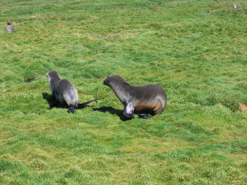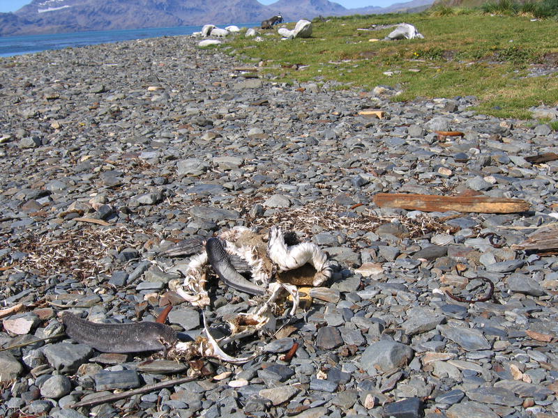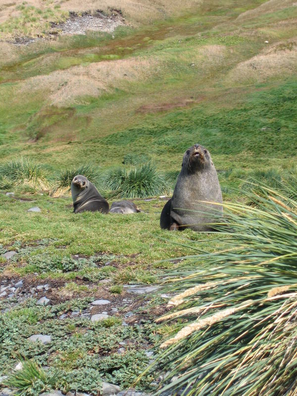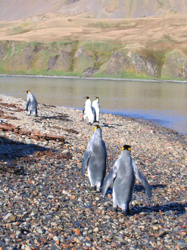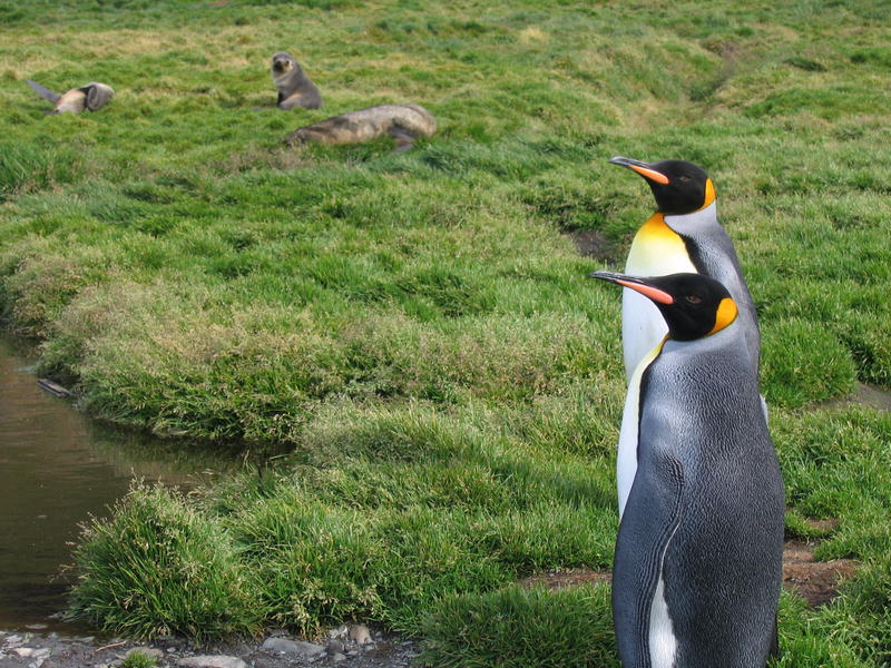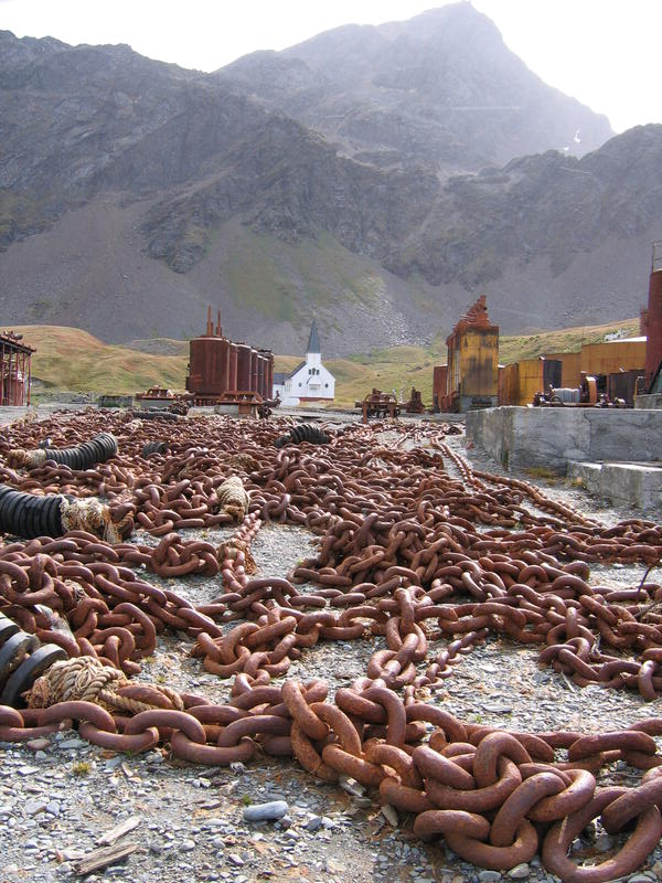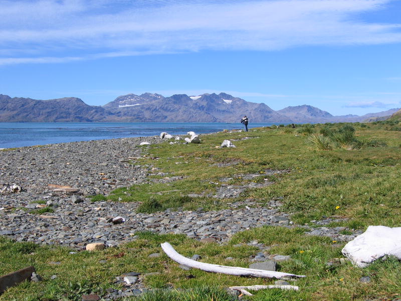 Путешествие на Южную Джорджию или в гости к пингвинам11.03 Гритвикен (Grytviken)Утро встретило нас следующими впечатлениями. Во-первых, спать без крена в три (а то и в четыре) раза лучше, чем с оным. Потому что левый бок за предыдущую неделю был отлёжан до полного не хочу. Во-вторых, снаружи — полный зоопарк! Причём клеток нету, и звери бродят без присмотра просто так сами по себе. Второе впечатление от этого зоопарка — это на самом деле не зоопарк, а таки немножко цирк. Уж больно эти пингвины потешные. Ходят переваливаясь с боку на бок туда-сюда, суют свои любопытные носы куда ни попадя. Пингвины ходят как у себя дома. Впрочем, они действительно дома. Живут они тут. И никто их тут не трогает. Пингвины галдят, лазят поплавать в воду. Тюлени забредают. И никто никого не ест! Такая модель пингвинов называется королевские пингвины. А вот местный патрульный катер, и на нём герб Южной Джорджии (немножко засиженный мухами). Рано утром пришла таможенная офицерша, наставила нам штампов в паспорта (ох и любят же они это дело), устроила инструктаж. Единственное животное, которое можно убивать — крысы. Остальных нужно беречь, и если зверь проявляет беспокойство — отойти от него подальше. Также она выдала нам по подарочному набору — карта, брошюрка и сертификат факта высадки на Южную Джорджию (я свой экземпляр подписал позже у капитана). Потом мы сходили на бывшую китобойную станцию — собственно Гритвикен. Потому что административно-научное поселение, где мы собственно высадились, находится в другом месте бухты и называется на самом деле King Edward Point. Ещё зашли в музейчик и погуляли по берегу туда-сюда. Но обо всём по-порядку. Твёрдая земля под ногами — это вообще здорово придумано. Кроме того за прошлую неделю глазу цепляться было почти не за что — одни волны да море, — так что нафотографировался всласть. Вид от K.E.P. к Grytviken и наоборот от Grytviken к K.E.P. Живность непуглива, не выделывается и позволяет себя фотографировать. Моё основное впечатление от китобойной станции — всё стоит на костях. По всему берегу разбросаны китовые кости. Причём не какие-то там мелкие косточки, а рёбра метра по два длиной, позвонки динозаврьего размера, и костей этих — тьма. Всё что белеет на берегу — всё кости. В лучшие времена на станциях перерабатывали до 8000 китов в год. Это был просто какой-то сумасшедший конвейер, сравнить можно разве что с лагерями смерти. Так что чего уж тут удивляться, что вокруг сплошные кости. Тихий ужас. Посудины стоят на своём последнем причале... Что ещё попадается вокруг. Больше всего попадается тюленей. Их в своё время тоже перебили почти поголовно (и даже два раза), но сейчас популяция восстановилась. Очень много речек и ручейков. Горы довольно высокие, много снега и ледников — всё это стекает ручьями. Речушки на каждом шагу. Растёт такая трава — tussac grass. Она растёт кочками-пучками, и сверху на кочках или под ними очень любят валяться тюлени (fur seal, они же котики). Лежит себе такая меховая тушка носом в куст, пока не наступишь — не заметишь. А у него не только ценный мех, но и полная пасть зубов. Хищник как-никак. Вспомнилось к месту, что таможня утром на брифинге рассказывала, что остров местами заминирован (ничего подозрительного руками не брать, пометить и сообщить в соответствующие инстанции). Растёт очень много мха и мясистой травы, очень качественные чертополох