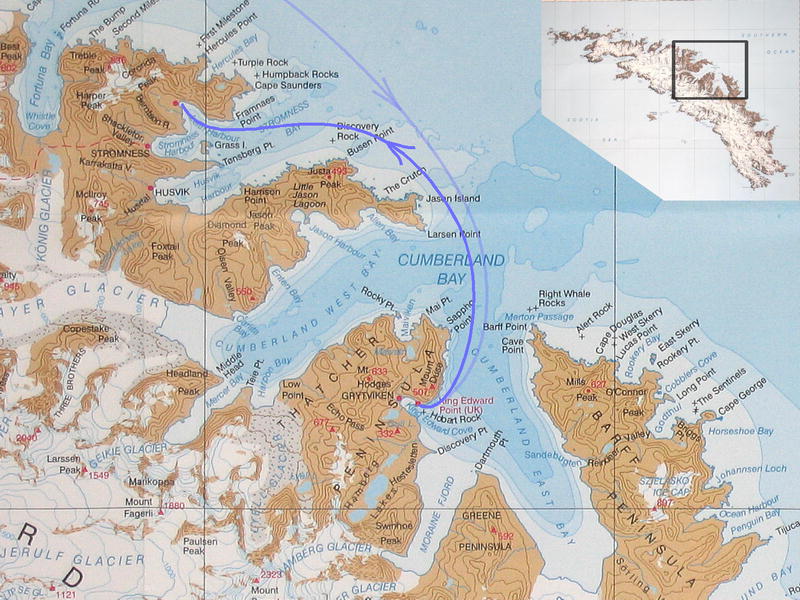 на выходе из бухты, где находится King Edward Point, было много кусков