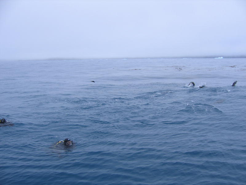 вместе с тюленями и разошлись: водолазы к нам, а тюлени от нас.