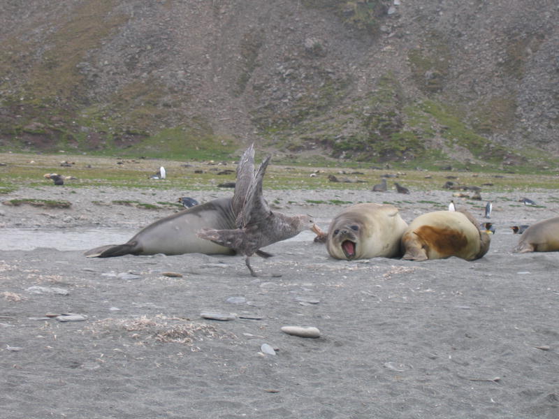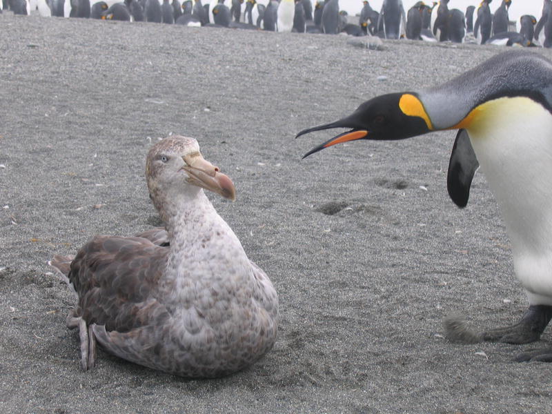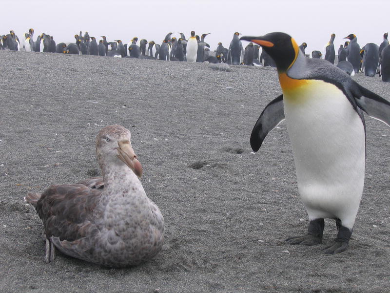 Здесь же в больших количествах толкутся альбатросы, поморники и прочая
