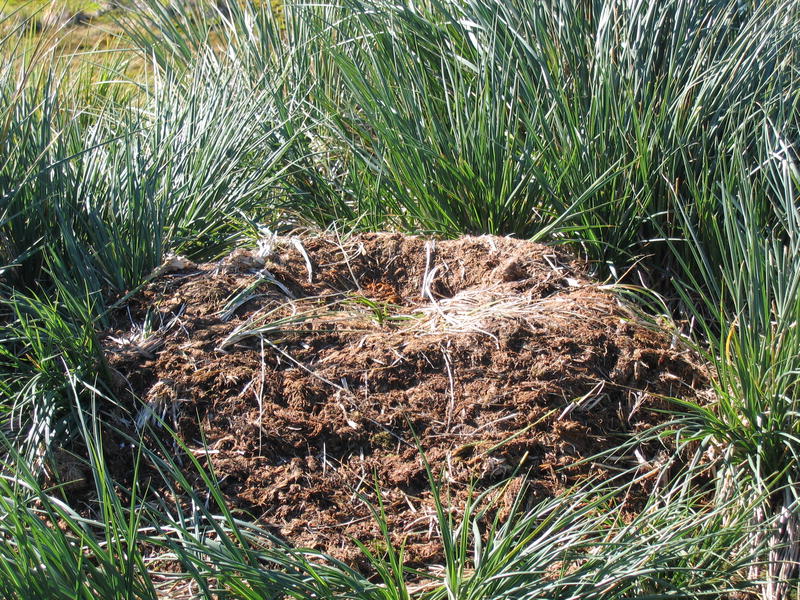 В этих гнёздах сидят альбатросы, кое-где уже с птенцами:
